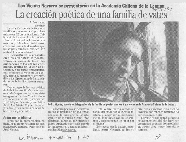 La creación poética de una familia de vates [artículo] E. Orellana.