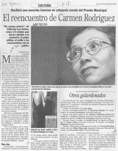 El reencuentro de Carmen Rodríguez [artículo] E. Orellana.