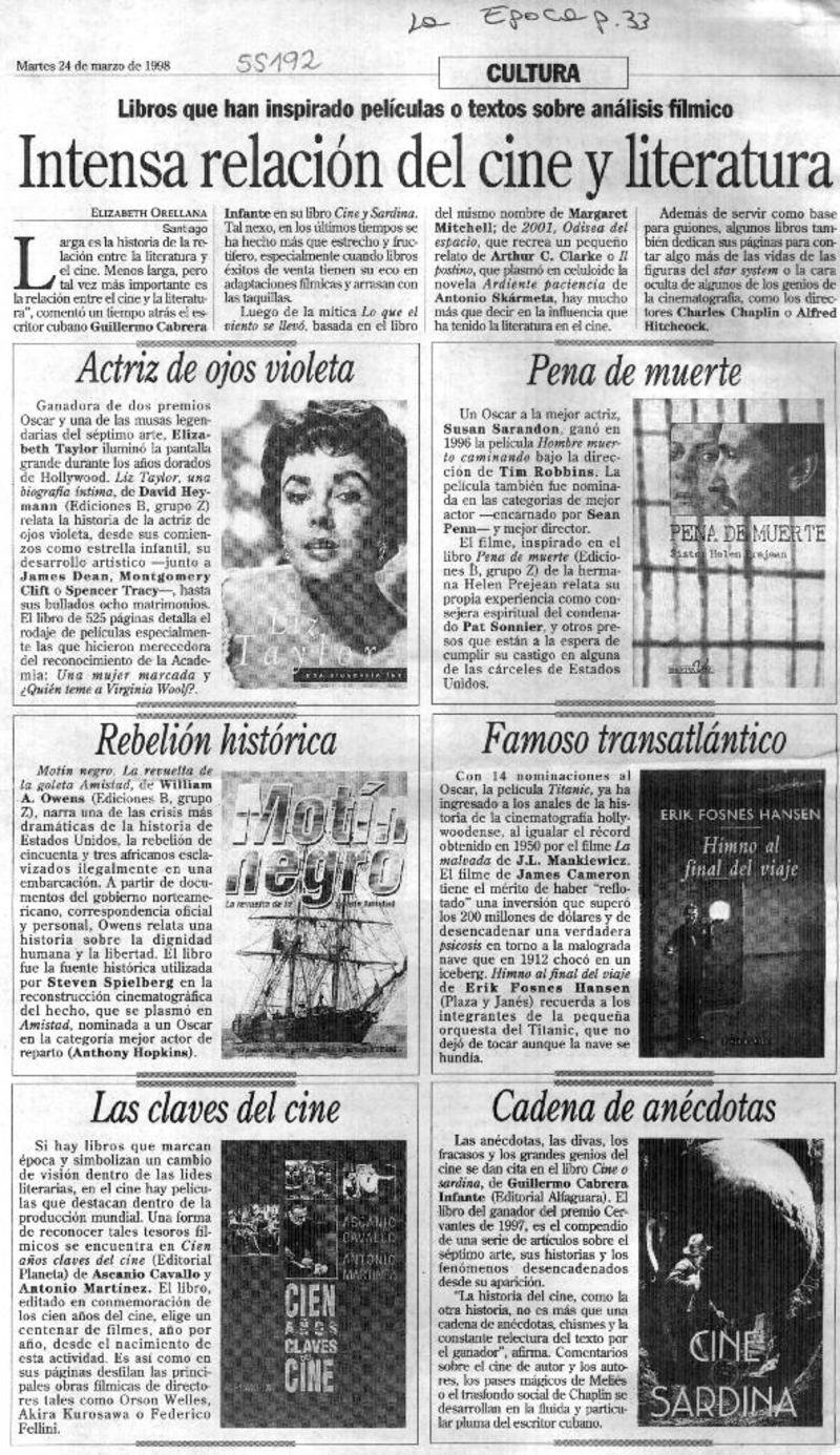Intensa relación del cine y la literatura: libros que han inspirado películas o textos sobre análisis fílmico [artículo] Elizabeth Orellana.