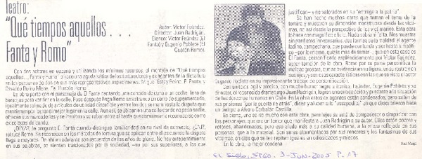 Teatro : "Qué tiempos aquellos -- Fanta y Romo" [artículo] Ana Muga.