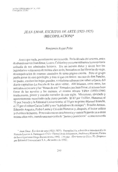 Jean Emar, escritos de arte (1923-1925) [artículo] Benjamín Rojas Piña.