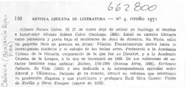 Alfonso Bulnes Calvo. [artículo] Benjamín Rojas Piña