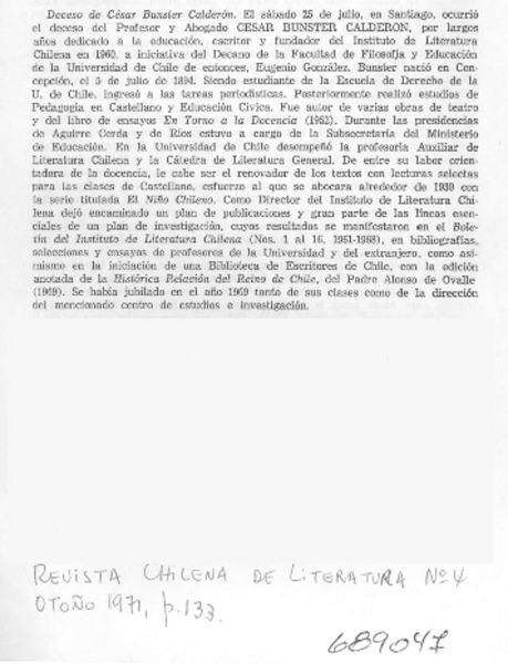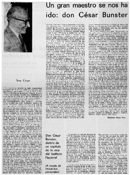 Deceso de César Bunster Calderón [artículo] Benjamín Rojas Piña.