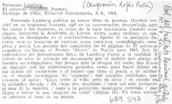 Autores chilenos - Lamberg, Fernando - Universo engañoso