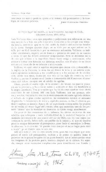 Autores chilenos - Vulliamy, Luis - Mejor lugar del mundo