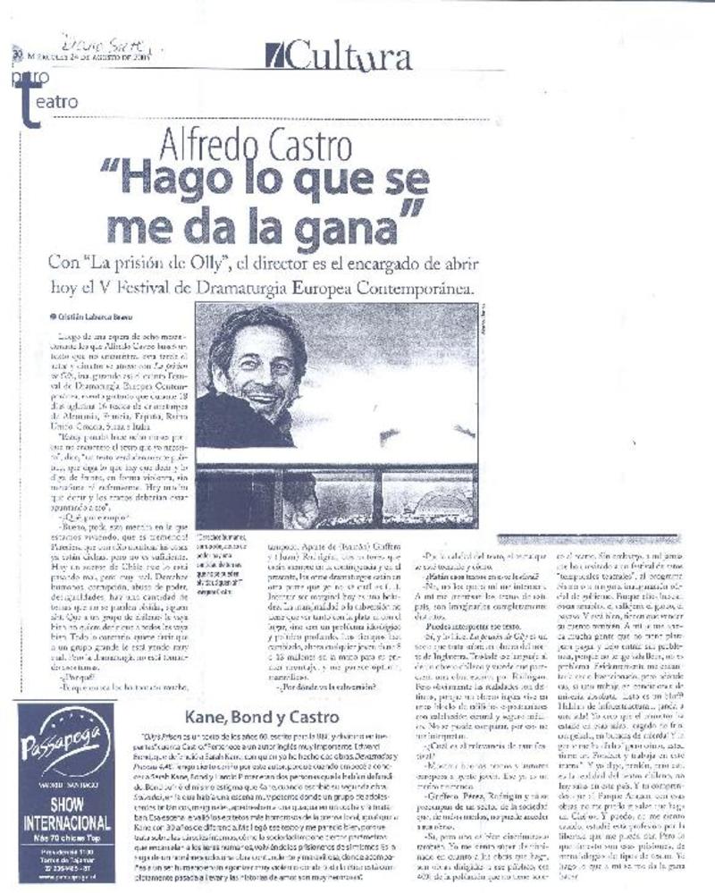 Alfredo Castro, "Ya pasé la etapa de tener que probarle al mundo" [artículo] Claudia Castro.