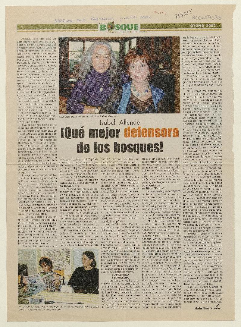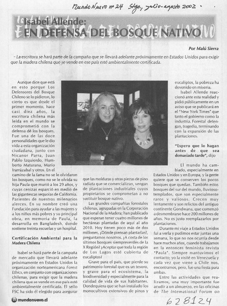Isabel Allende: en defensa del bosque nativo [artículo] Malú Sierra.