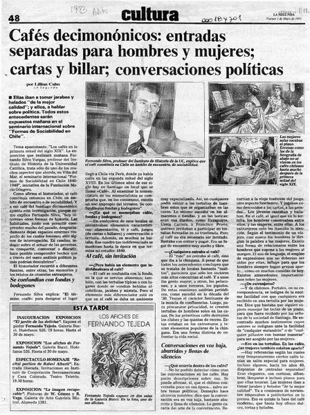 Cafés decimonónicos, entradas separadas para hombres y mujeres, cartas y billar, conversaciones políticas [artículo] Lillian Calm.