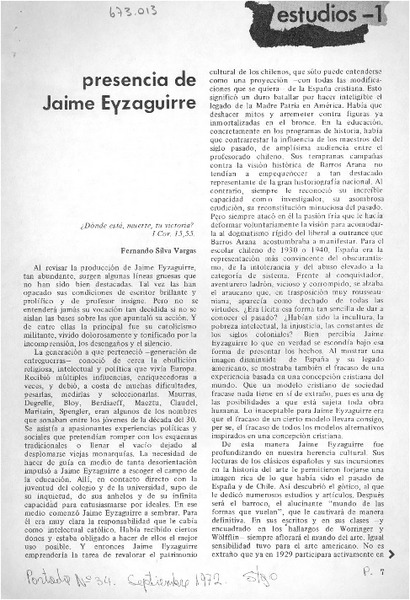 Presencia de Jaime Eyzaguirre [artículo] Fernando Silva Vargas.
