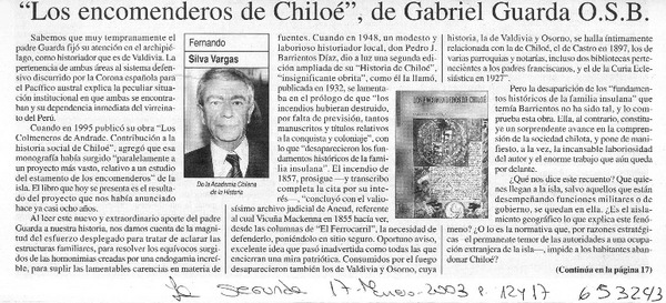 "Los encomenderos de Chiloé", de Gabriel Guarda O.S.B. [artículo] Fernando Silva Vargas