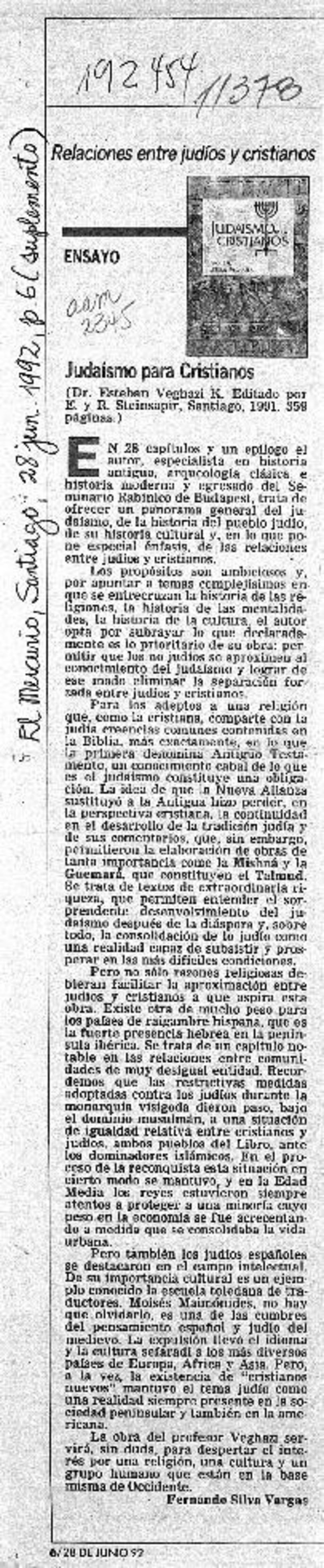 Relaciones entre judíos y cristianos [artículo] Fernando Silva Vargas.