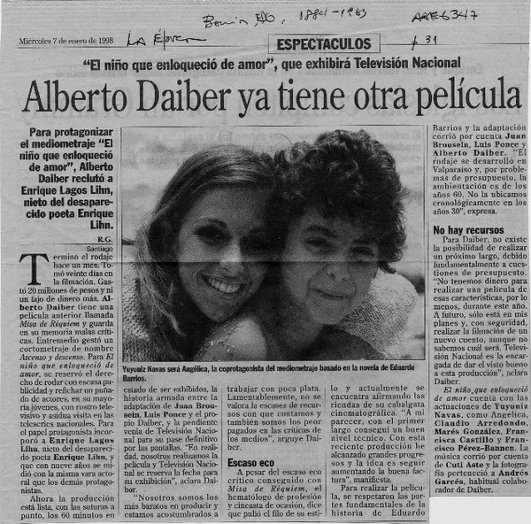 Alberto Daiber ya tiene otra película [artículo] R. G.
