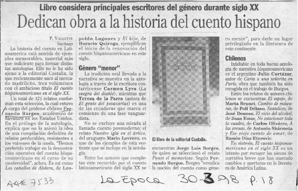 Dedican obra a la historia del cuento hispano [artículo] P. Vallette.