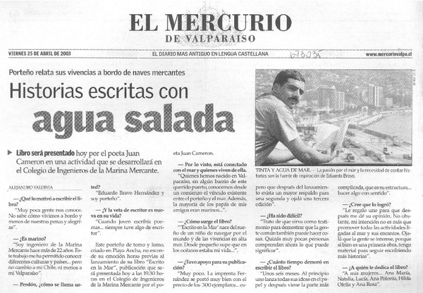 Historias escritas con agua salada : [Entrevista] [artículo] Alejandro Valdivia.