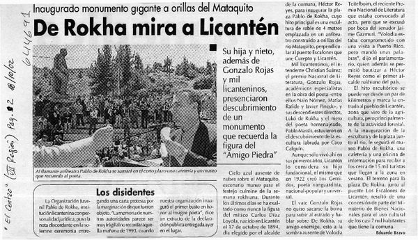 El río, la estatua y el sol licantenino [artículo] Eduardo Bravo.