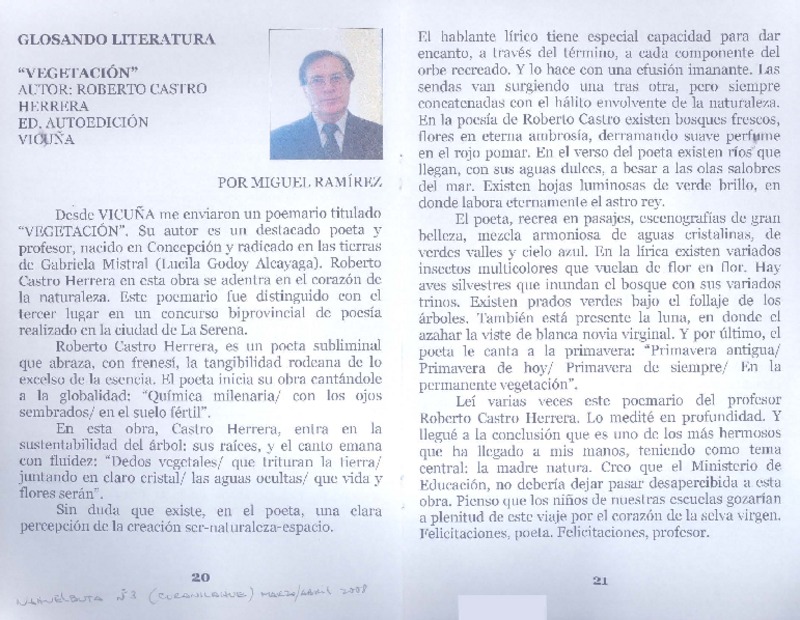 Vegetación [artículo] Miguel Ramírez.