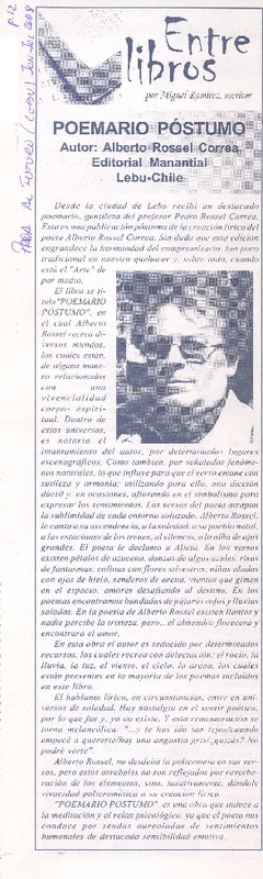 Autores chilenos - Rossel Correa, Alberto - Poemario póstumo