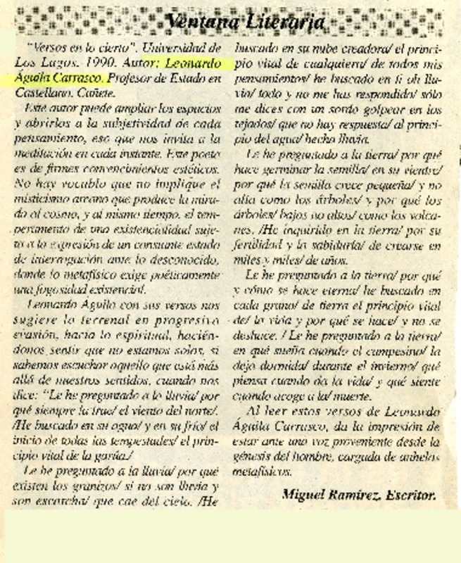 "Versos en lo cierto" [artículo] Miguel Ramírez