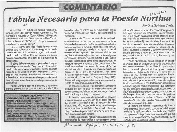 Fábula necesaria para la poesía nortina [artículo] Osvaldo Maya Cortés.