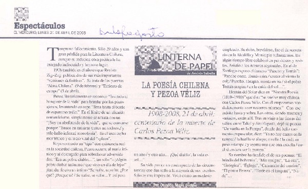 La poesía chilena y Pezoa Véliz [artículo]Osvaldo Maya Cortés.