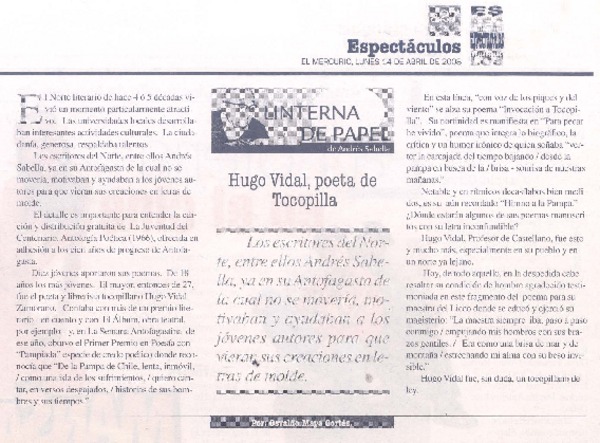 Hugo Vidal, poeta de Tocopilla [artículo]Osvaldo Maya Cortés.