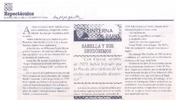 Sabella y sus seudónimos [artículo]Osvaldo Maya Cortés.