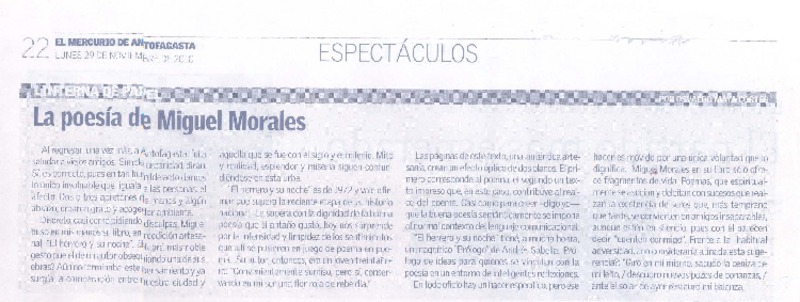 La poesía de Miguel Morales [artículo] Osvaldo Maya Cortés.