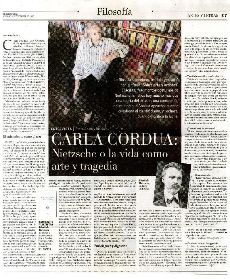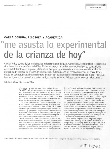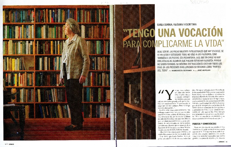 Carla Cordua, filósofa y escritora "Tengo una vocación para complicarme la vida". (entrevistas) [artículo] Margarita Serrano