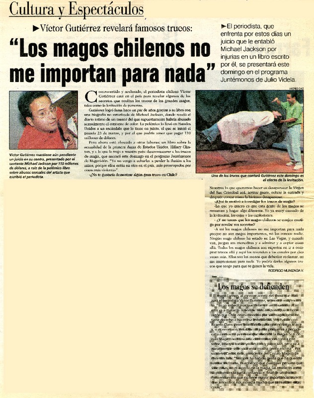 "Los magos chilenos no me importan para nada" [artículo] Rodrigo Munizaga V.
