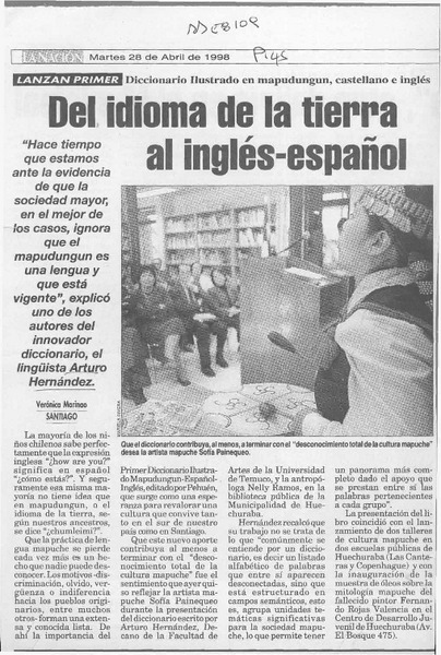 Del idioma de la tierra al inglés-español [artículo] Verónica Marinao.