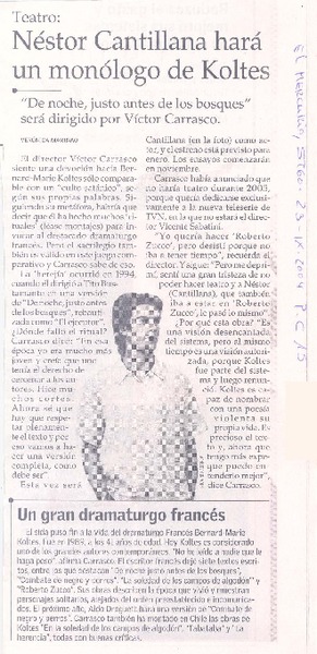 Néstor Cantillana hará un monólogo de Koltes [artículo] Verónica Marinao.