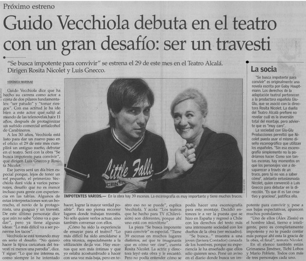 Guido Vecchiola debuta en el teatro con un gran desafío: ser un travesti [artículo] Verónica Marinao.