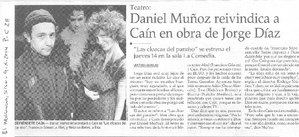 Daniel Muñoz reivindica a Caín en obra de Jorge Díaz [artículo] Verónica Marinao.