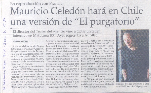Héctor Noguera dirigirá a su hija Amparo en obra francesa [artículo] Verónica Marinao.