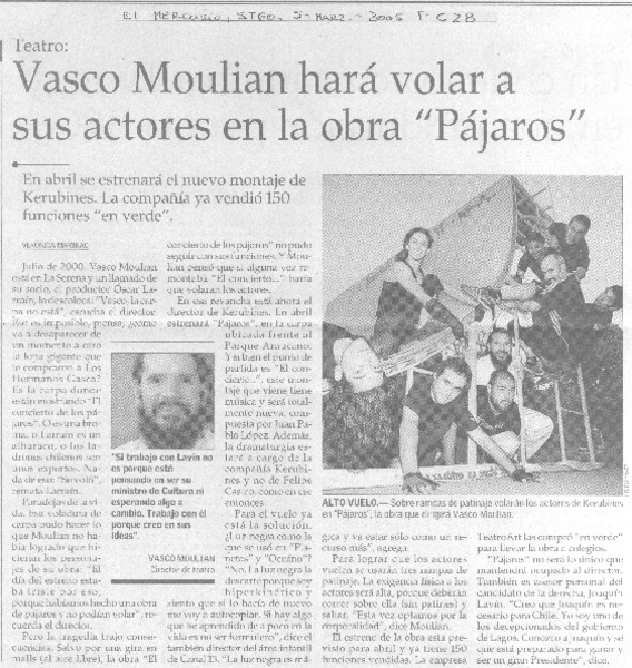 Vasco Moulián hará volar a sus actores en la obra "Pajaros" [artículo] Verónica Marinao