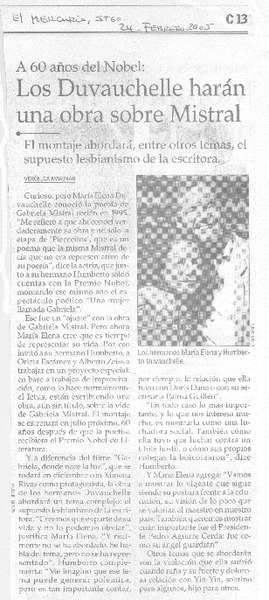 Ruiz traslada su universo al teatro [artículo] Verónica Marinao.