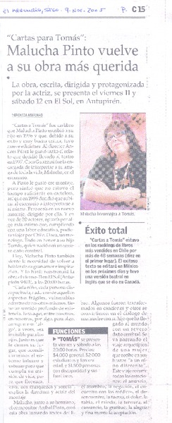 Teatro : Malucha Pinto sigue inspirada por mujeres [artículo] Verónica Marinao.
