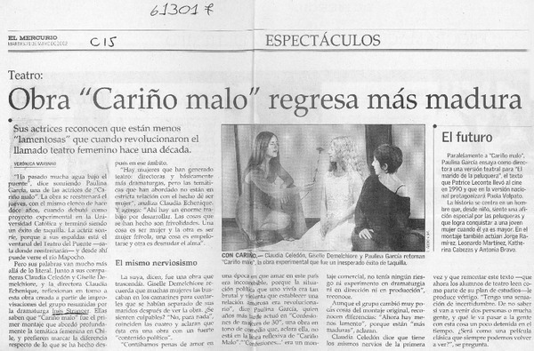 Obra "Cariño malo" regresa más madura [artículo] Verónica Marinao