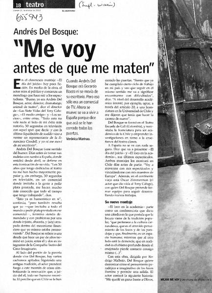 "Era el niño mimado del teatro chileno, ahora me atacan" [artículo] Verónica Marinao.