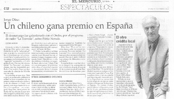 Un maestro del teatro gana el premio Nacional. [artículo] Verónica Marinao.