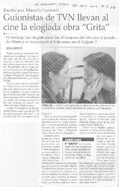 Guionistas de TVN llevan al cine la elogiada obra "Grita" [artículo] Verónica Marinao.