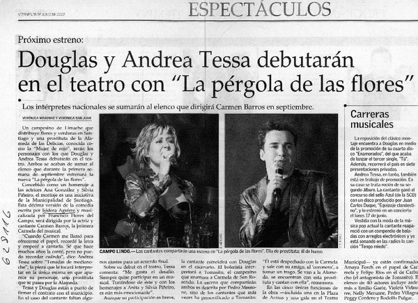 Douglas y Andrea Tessa debutarán en el teatro con "La pérgola de las flores" [artículo] Verónica Marinao <y> Verónica San Juan