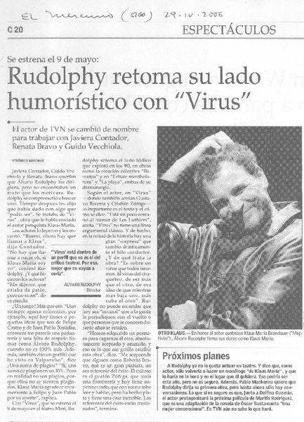 Rudolphy retoma su lado humorístico con "Virus" [artículo] Verónica Marinao.