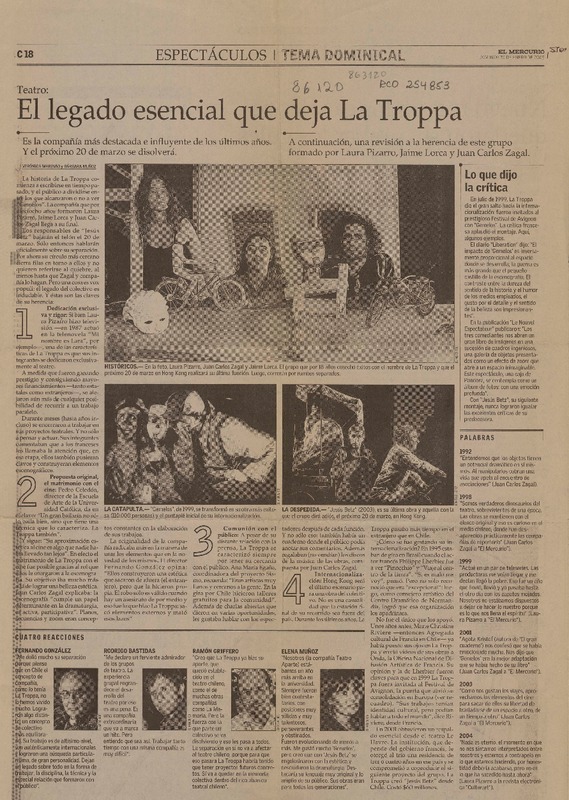 Teatro : el legado esencial que deja La Troppa [artículo] Verónica Marinao y Bárbara Muñoz.