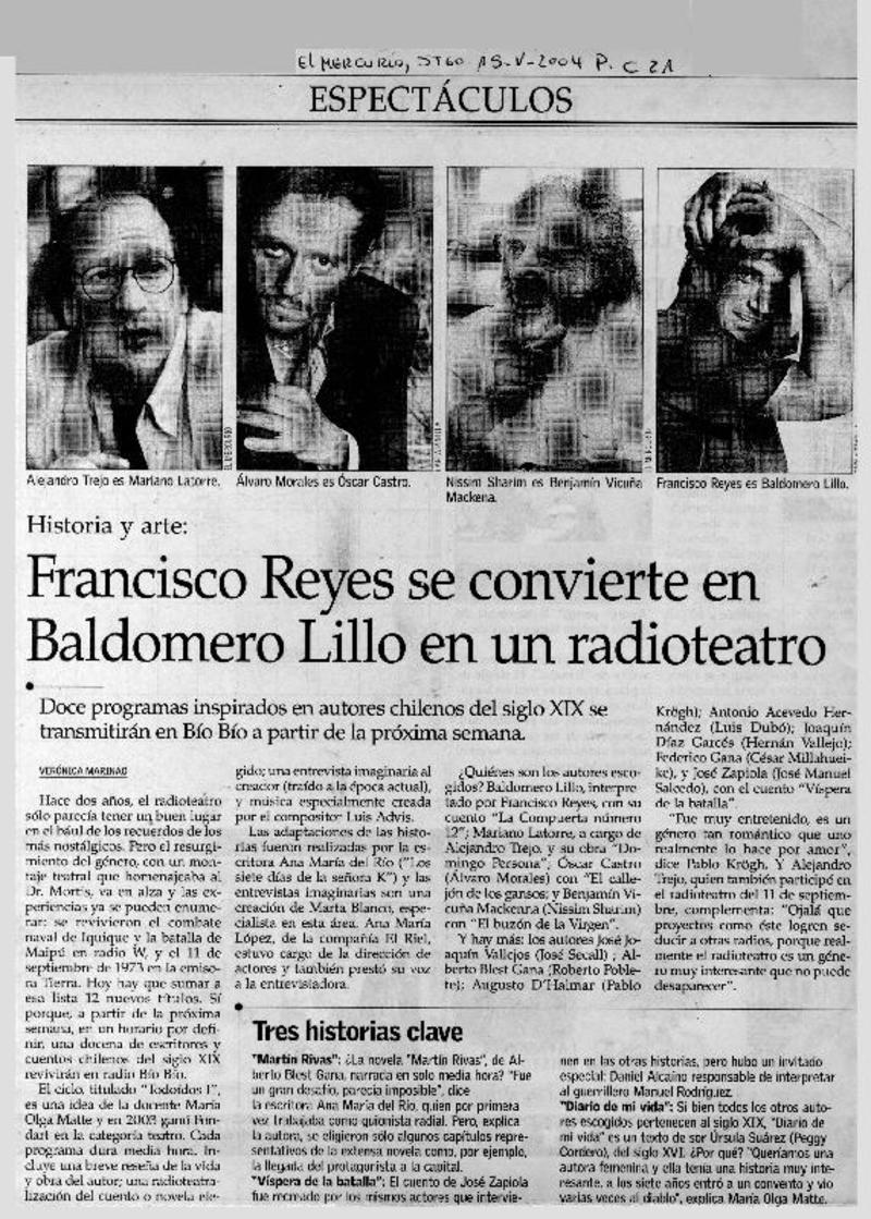 Francisco Reyes se convierte en Baldomero Lillo en un radioteatro [artículo] Verónica Marinao.