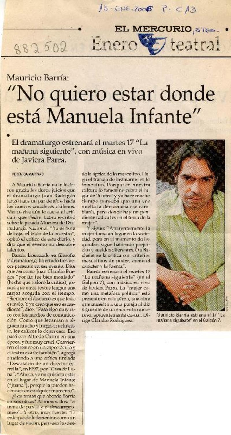 Habla la revelación del teatro local [artículo] Verónica Marinao.