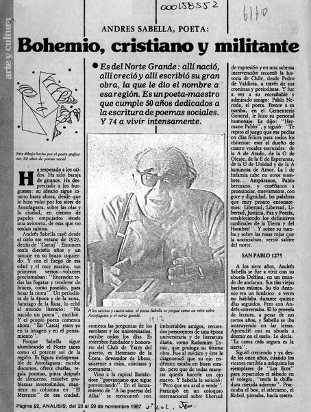 Bohemio, cristiano y militante [artículo] Carolina Díaz.