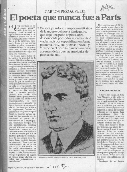 El poeta que nunca fue a París [artículo] Carolina Díaz T.