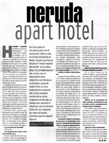 Neruda apart hotel: [entrevistas] [artículo] Sergio Paz.