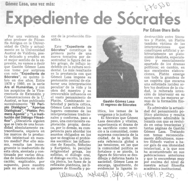 Autores chilenos - Gómez Lasa, Gastón - Expediente de Sócrates